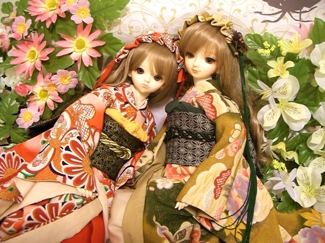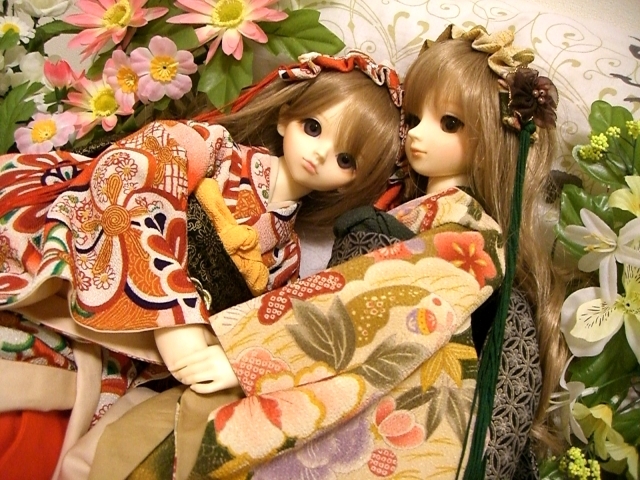 おそろいの着物でなんとなく和な雰囲気の2人です。既に気分はお正月♪